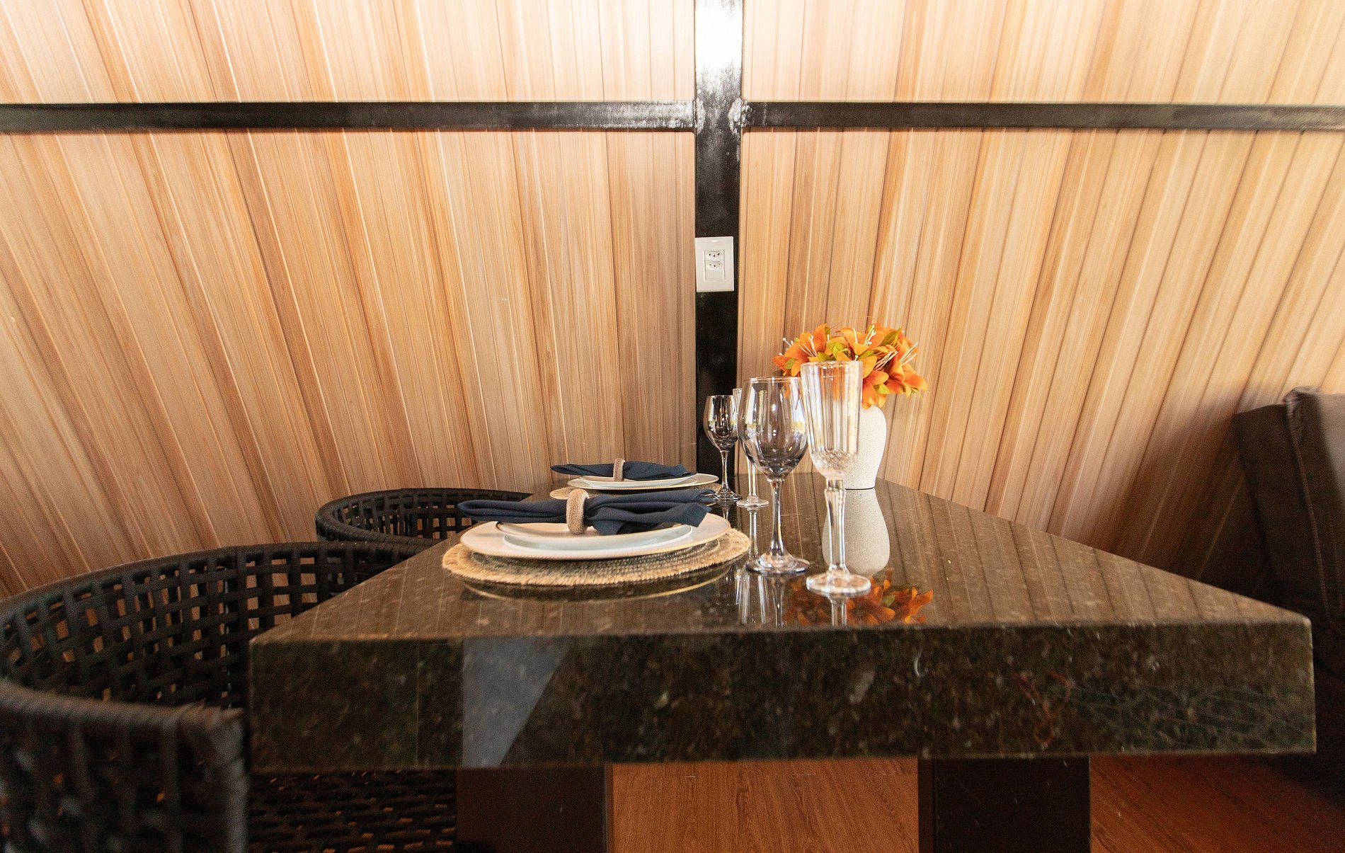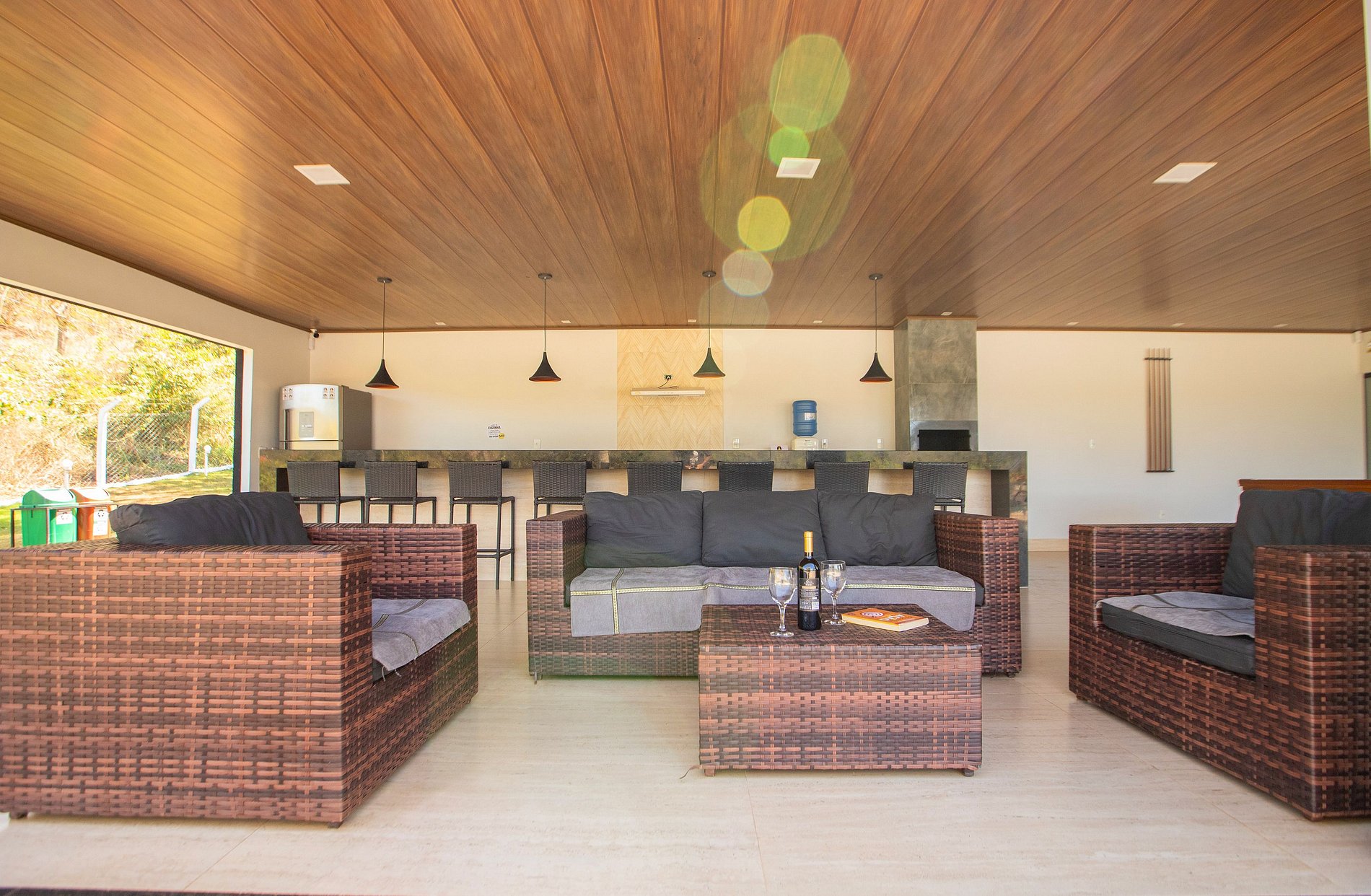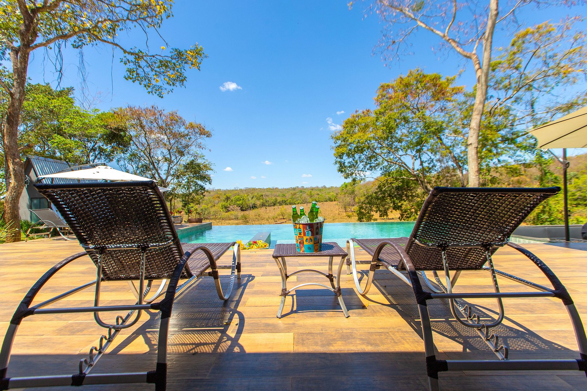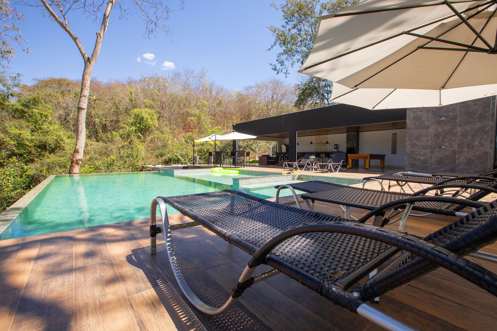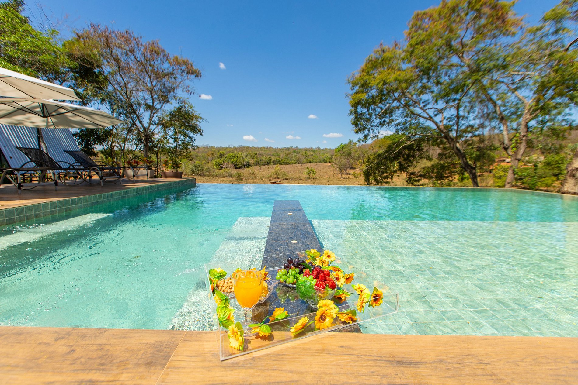 Tudo foi pensado para que a estadia seja completa. Além da estrutura interna, os hóspedes desfrutam de uma área de lazer que transforma qualquer momento em experiência: piscina com borda infinita que se confunde com o horizonte, bangalô acolhedor com vista para o lago, solário para renovar as energias e, à noite, o charme da fogueira que convida a boas conversas sob o céu estrelado.