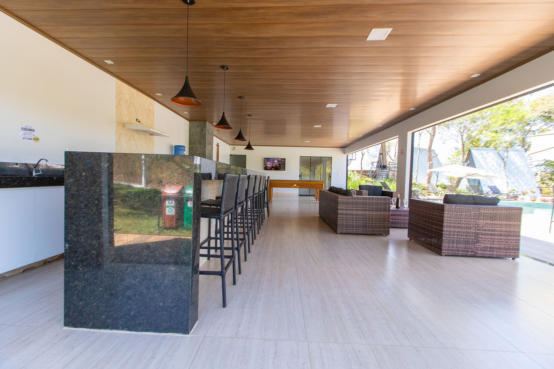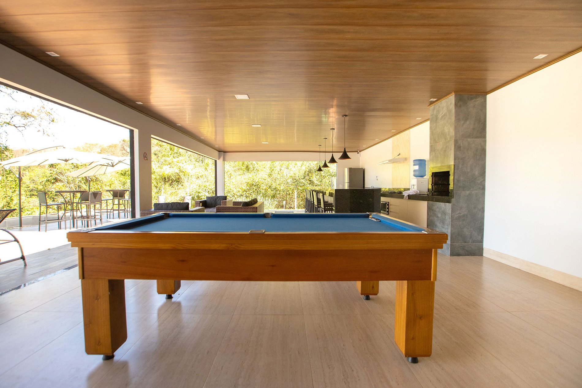 Ao lado da piscina, você encontra uma área à beira do lago com churrasqueira, espreguiçadeiras, poltronas e ombrelones, além de mesa de sinuca e cozinha completa — um espaço perfeito para relaxar, celebrar e criar momentos inesquecíveis. Um refúgio perfeito para quem busca romantismo, contato com a natureza e conforto em um ambiente seguro e familiar.