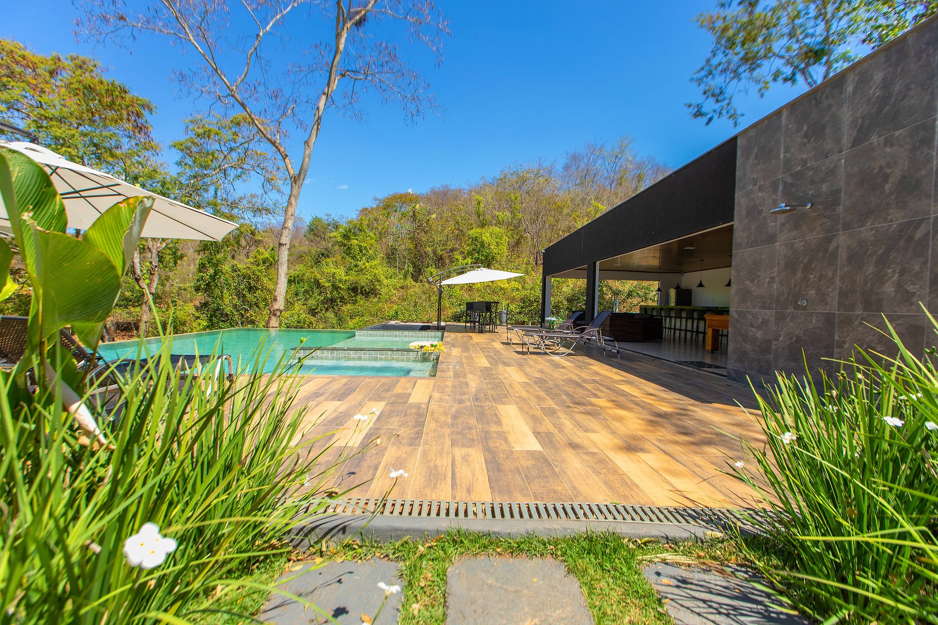E quando você quiser viver ao ar livre, a área comum se revela como um verdadeiro cartão-postal: piscina de borda infinita refletindo o céu, bangalô com vista para o lago, solário ensolarado e fogueira acesa para noites estreladas. Ao lado, uma estrutura completa com churrasqueira, espreguiçadeiras, poltronas, ombrelones, mesa de sinuca, cozinha de apoio e todo o conforto para celebrar com quem você ama.