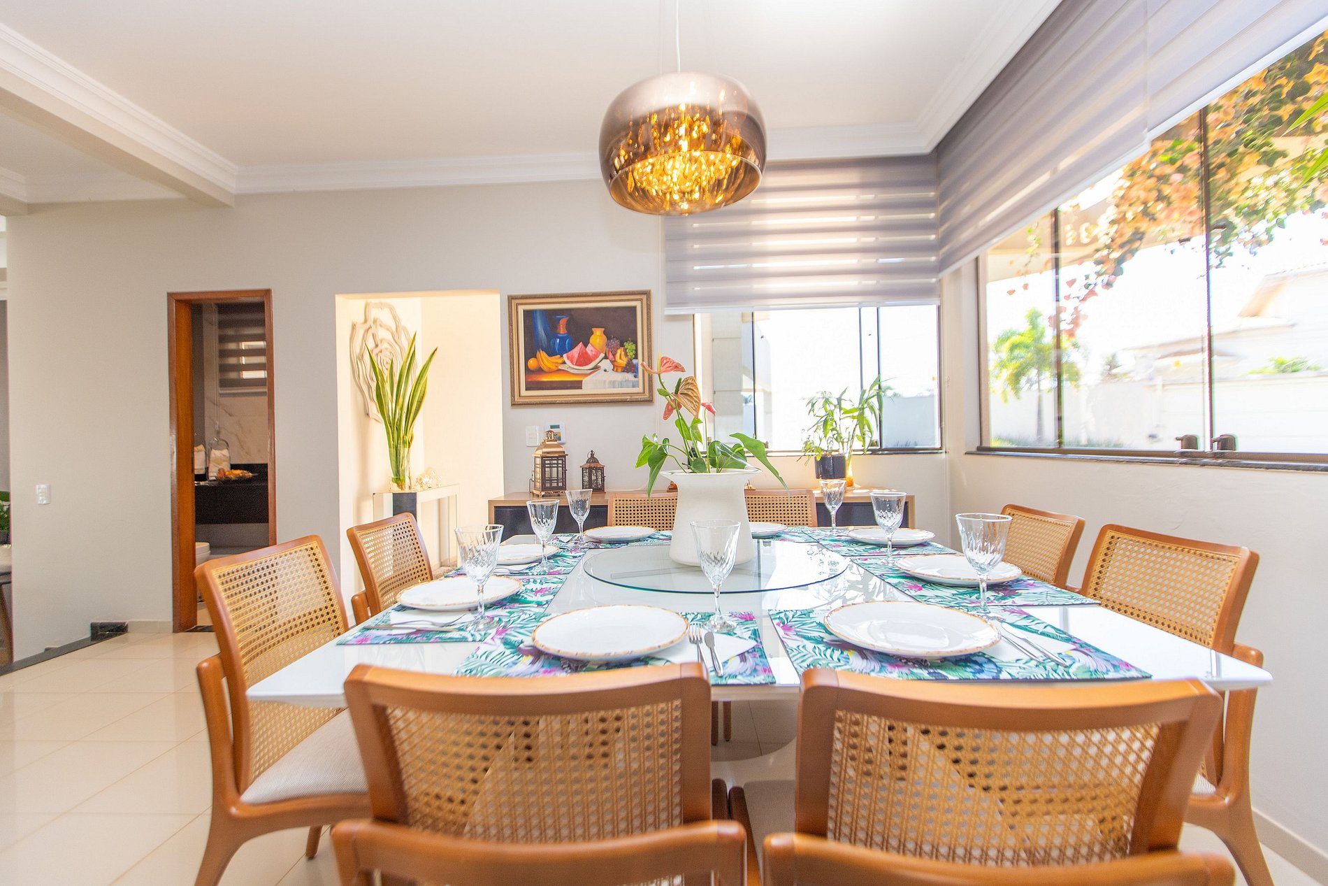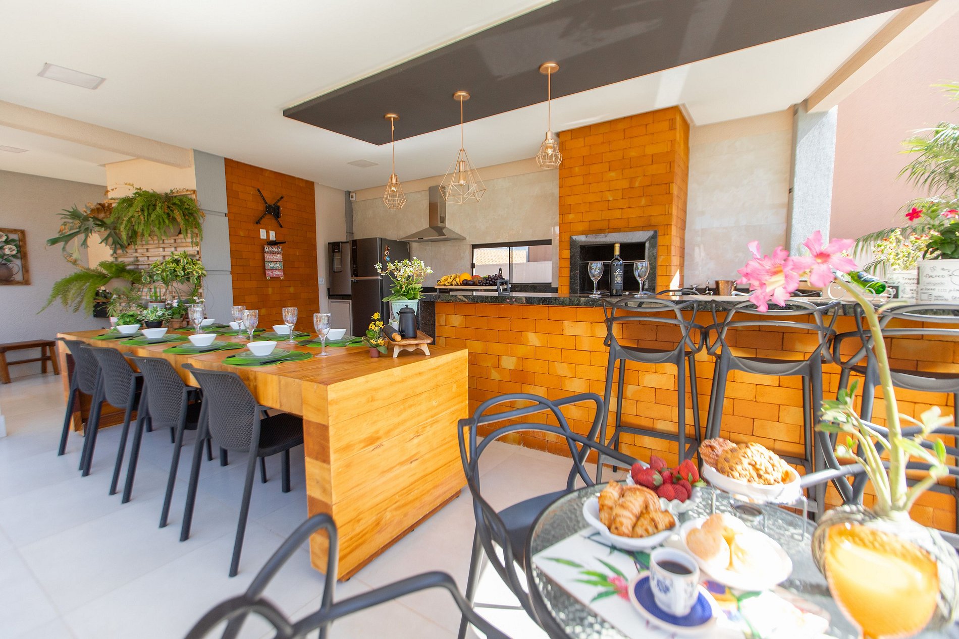 Dentro da casa, o conforto continua: uma cozinha moderna e super equipada com lava-louças, air fryer e diversos utensílios garante praticidade total. A sala de TV e jantar, junto com ambientes bem decorados, proporcionam aconchego e estilo. Para completar, a casa está em um bairro nobre, com segurança reforçada por câmeras e cerca elétrica, a poucos minutos do centro de Caldas Novas, unindo tranquilidade, conveniência e sofisticação.