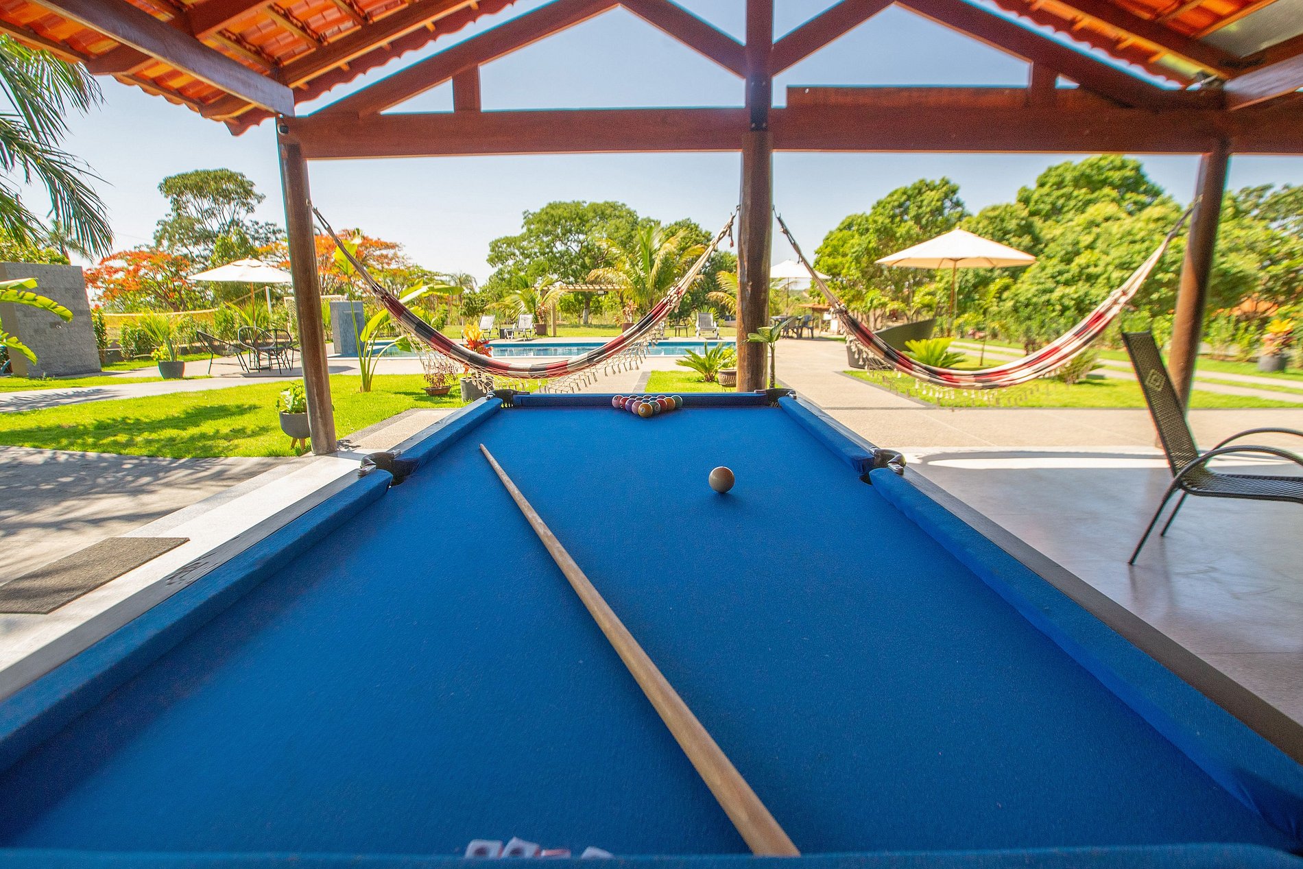 - Diversão garantida para todos com mesa de sinuca, pebolim, playground para crianças, campinho de futebol de areia e uma ampla área gramada.