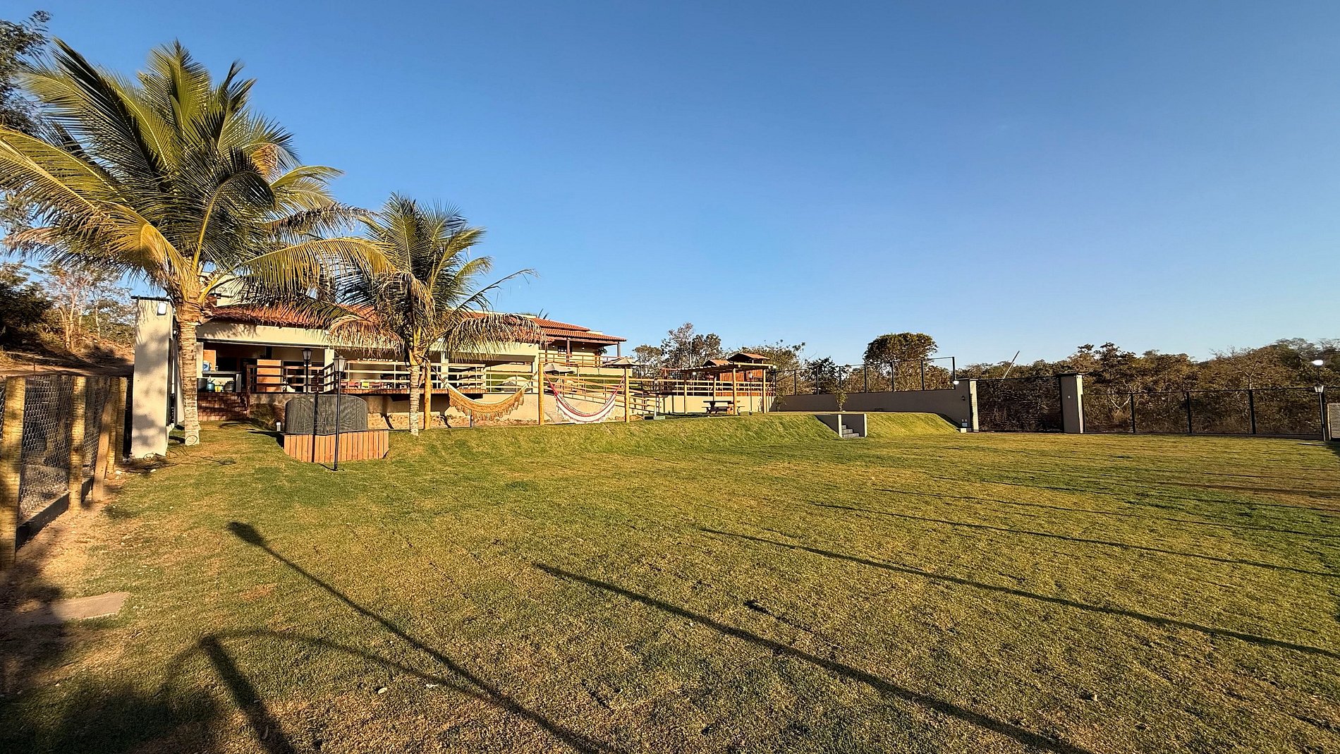 Internamente, a casa oferece sala com TV Smart, cozinha equipada com utensílios diversos (air fryer, cafeteira, sanduicheira, liquidificador, entre outros) e 6 quartos com ar-condicionado e blackout, sendo 3 suítes que garantem privacidade e aconchego. A estrutura se completa com lavanderia, lavabo externo e uma extensa área verde ao redor, ideal para caminhadas, piqueniques ou momentos de relaxamento junto à natureza vibrante do local.