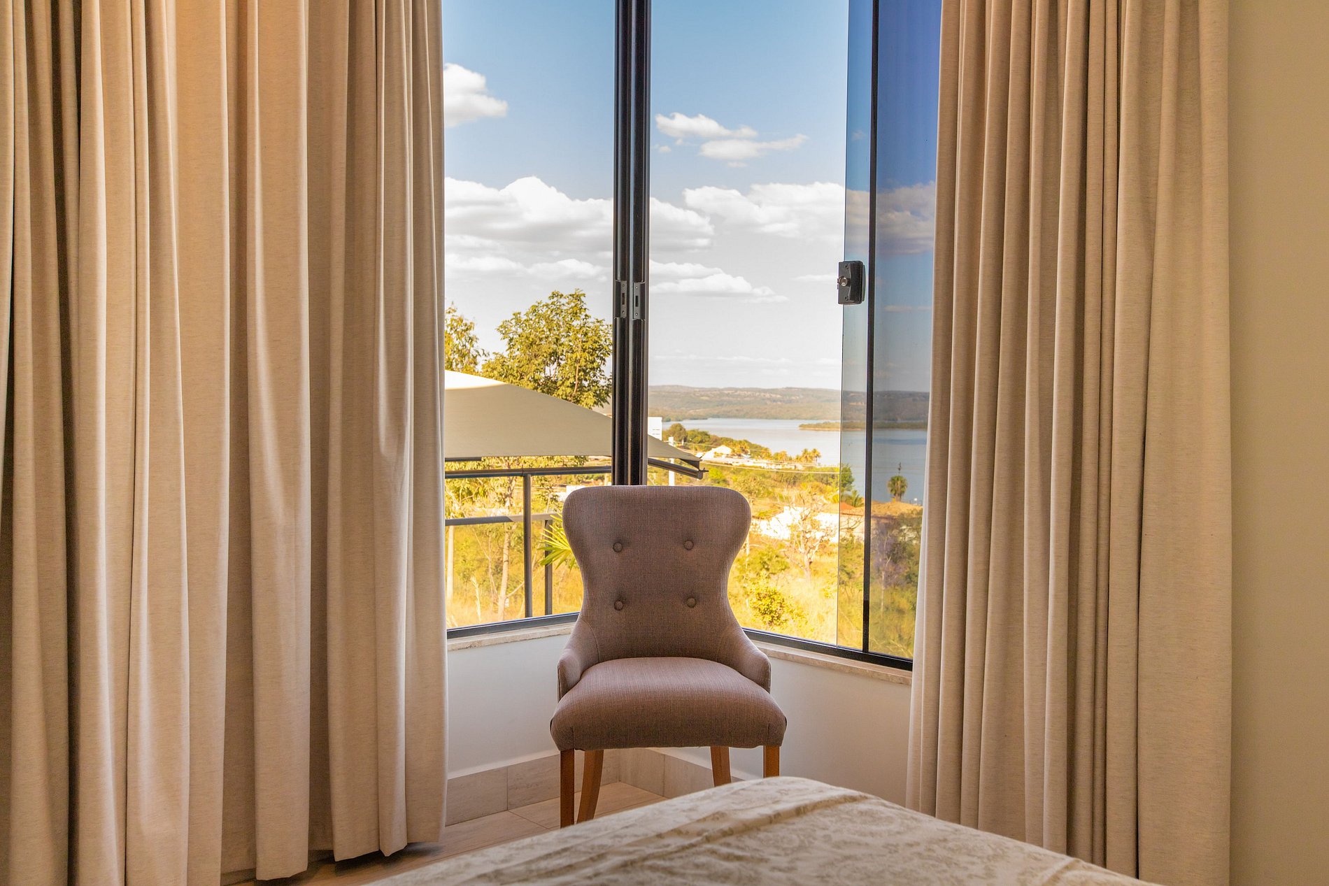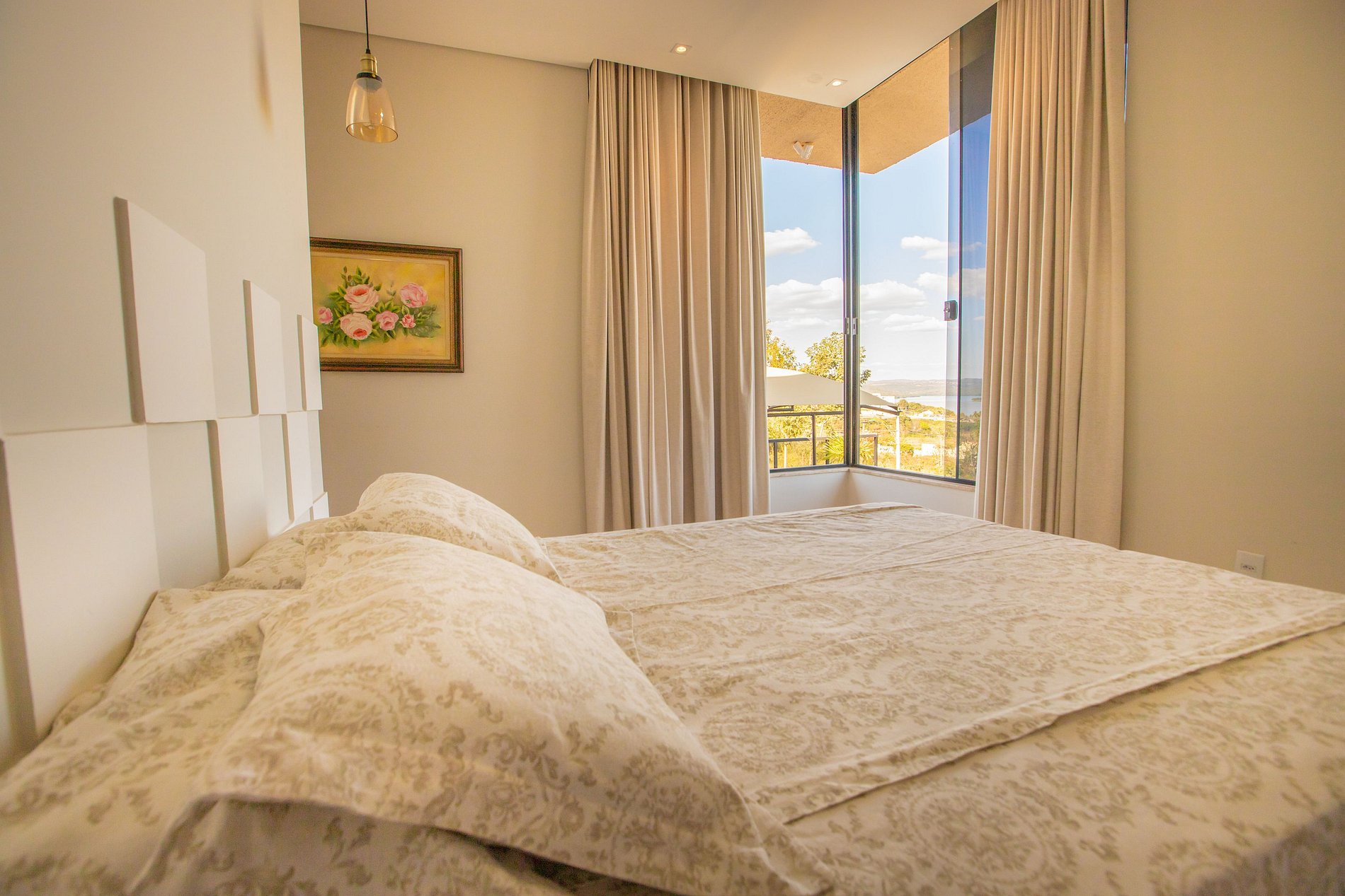 Está localizada em uma área bastante afastada do centro, mas é um local tranquilo e tem uma vista muito bonita para o lago Corumbá.