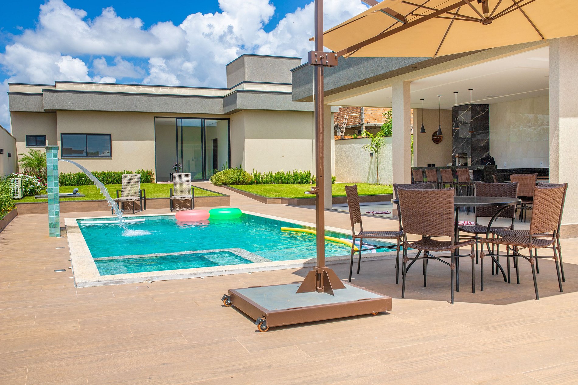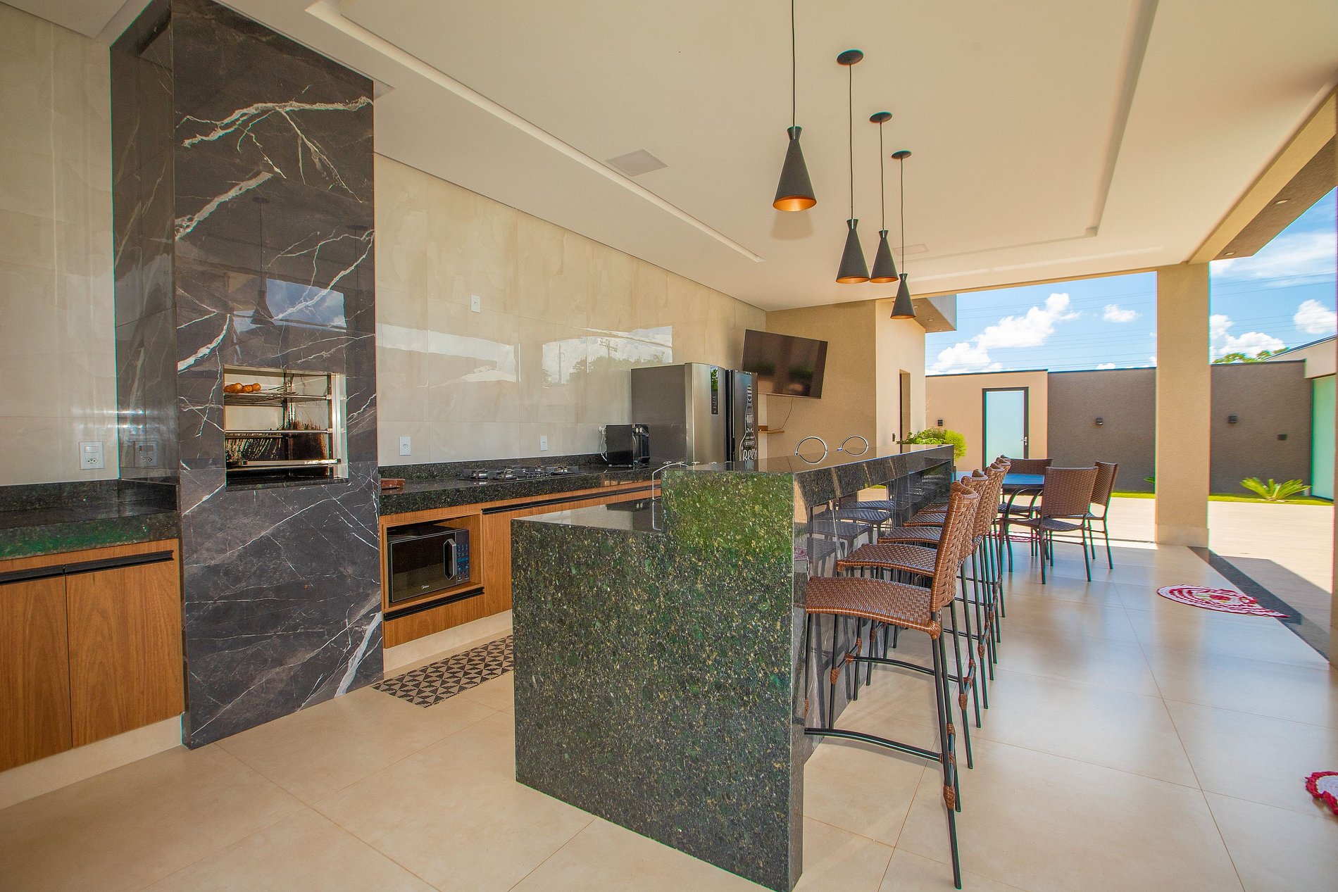 Desfrute de luxo e lazer nesta casa de 4 suítes em condomínio exclusivo com acesso ao lago (consulte navegabilidade antes de finalizar a reserva). O destaque dessa casa é a área de lazer com área gourmet com cozinha completa, churrasqueira e cervejeira. A piscina é aquecida e possui cascata, uma espaçosa hidro e parte rasa para as crianças! Com espaços amplos e confortáveis, esta residência é o refúgio perfeito para suas férias inesquecíveis.