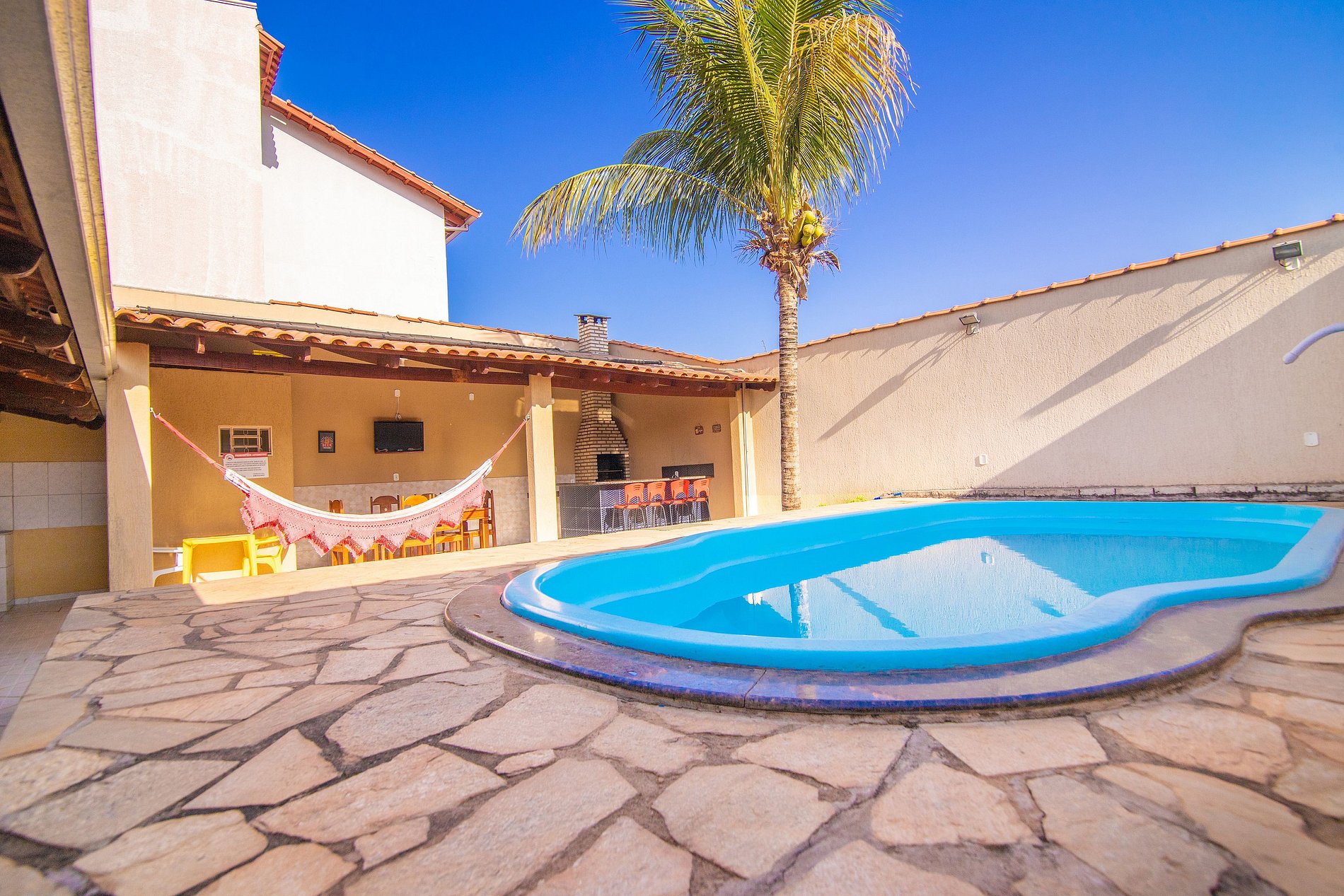 Se você está buscando o local perfeito para suas férias, esta casa é ideal para você! Ela une excelente localização e praticidade. Para os momentos de lazer, você pode relaxar na piscina da casa, que conta com climatização solar ou na rede de descanso que fica no quintal da casa. Ao lado da piscina, uma área gourmet com churrasqueira para os amantes de churrasco. A cozinha da casa é bem completa. Com vários utensílios e eletrodomésticos, possui tudo o que você precisa para preparar as suas refeições. A casa também conta com área de serviço com lavatório para roupas.
