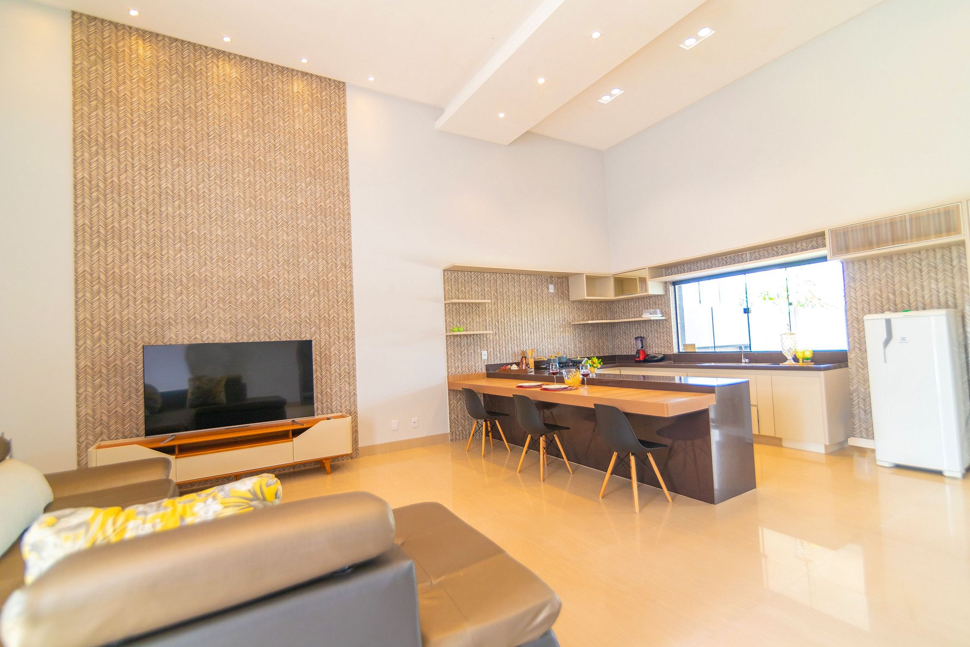 Nada como acordar em um lugar diferente e ter os amigos ao lado para viver novas experiências e aventuras! Essa belíssima casa fica em condomínio fechado, com acesso privativo para o Lago Corumbá e conta com total segurança e privacidade. Indicada para hóspedes de muito bom gosto que não abrem mão da qualidade na hora de se hospedar, ela conta com cozinha completa, área gourmet, piscina climatizada com parte rasa e um campinho de futebol.