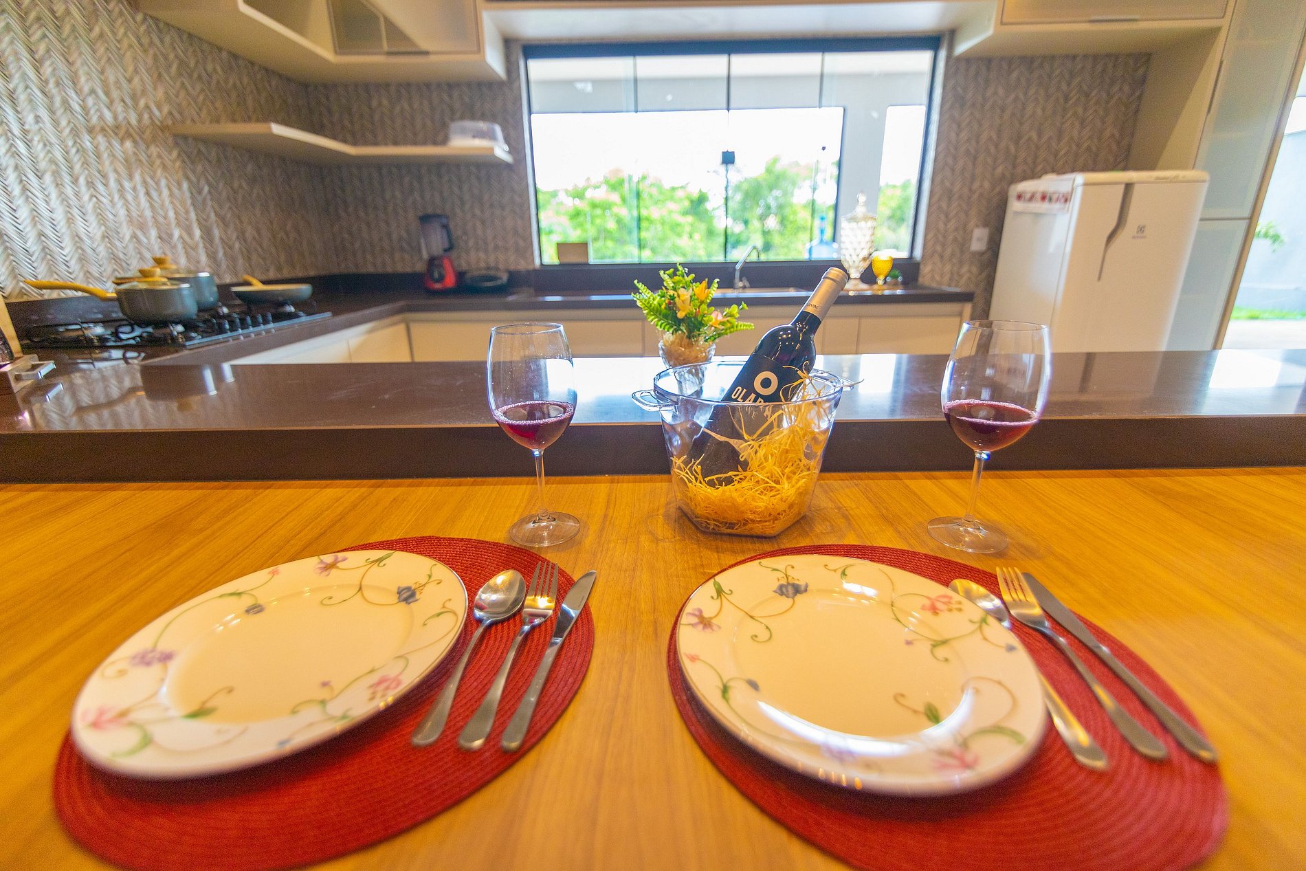 Casa muito bonita, com ótima estrutura fisica. Tivemos somente um contratempo com o ar condicionado da suite. Porém tivemos a empresa de locação se dispôs a resolver prontamente. Infelizmente era algo que teríamos que sair do quarto com as malas por um período então abrimos mão. A casa é muito agradável, bem ampla. Falta somente alguns itens tipo cadeira de descanso na área de lazer/ piscina. E um ventilador ou algo assim na sala de estar e área. Como está muito calor esses dias sofremos pela falta de ventilador na área externa. E se possível também colocar apoios para rede. Como tenho criança que usa rede para dormir, sentimos falta de ganchos, pq a rede levamos. Porém no mais foi perfeito esses dias na casa. Utensílios de cozinha impecável. Tudo limpinho