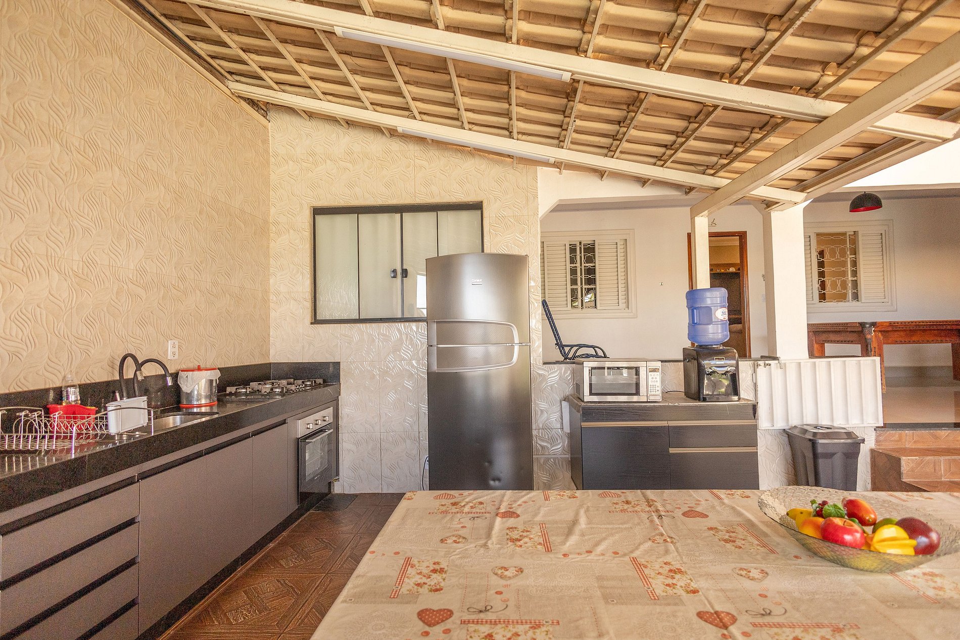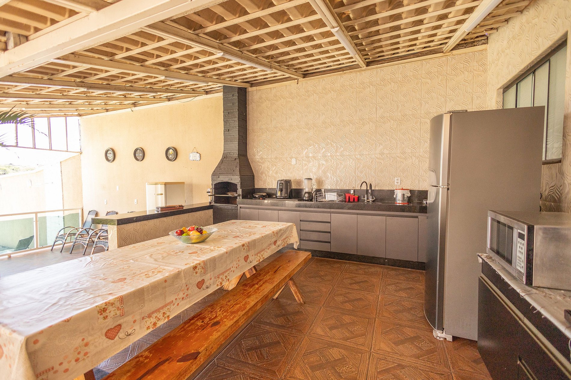 A ampla varanda gourmet é um convite ao lazer e à convivência. Totalmente equipada, ela conta com churrasqueira, mesa de sinuca, freezer, geladeira, fogão, forno, micro-ondas, air fryer, liquidificador, sanduicheira, talheres e mesas com cadeiras. É o espaço perfeito para preparar refeições incríveis e criar momentos especiais com quem você ama.