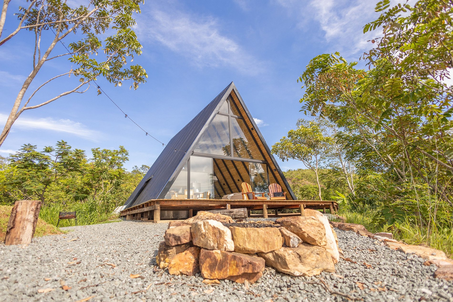 A Cabana é uma imersão com a natureza é a maior cabana do Centro-Oeste. No amplo deck, você será presenteado com uma paisagem de tirar o fôlego, ideal para relaxar e se conectar com a essência do Cerrado. Nele, você pode relaxar em uma hidromassagem ao ar livre enquanto aprecia o horizonte, ou aproveitar o espaço da fogueira para noites aconchegantes sob as estrelas, compartilhando histórias, risadas e, por que não, um bom vinho.