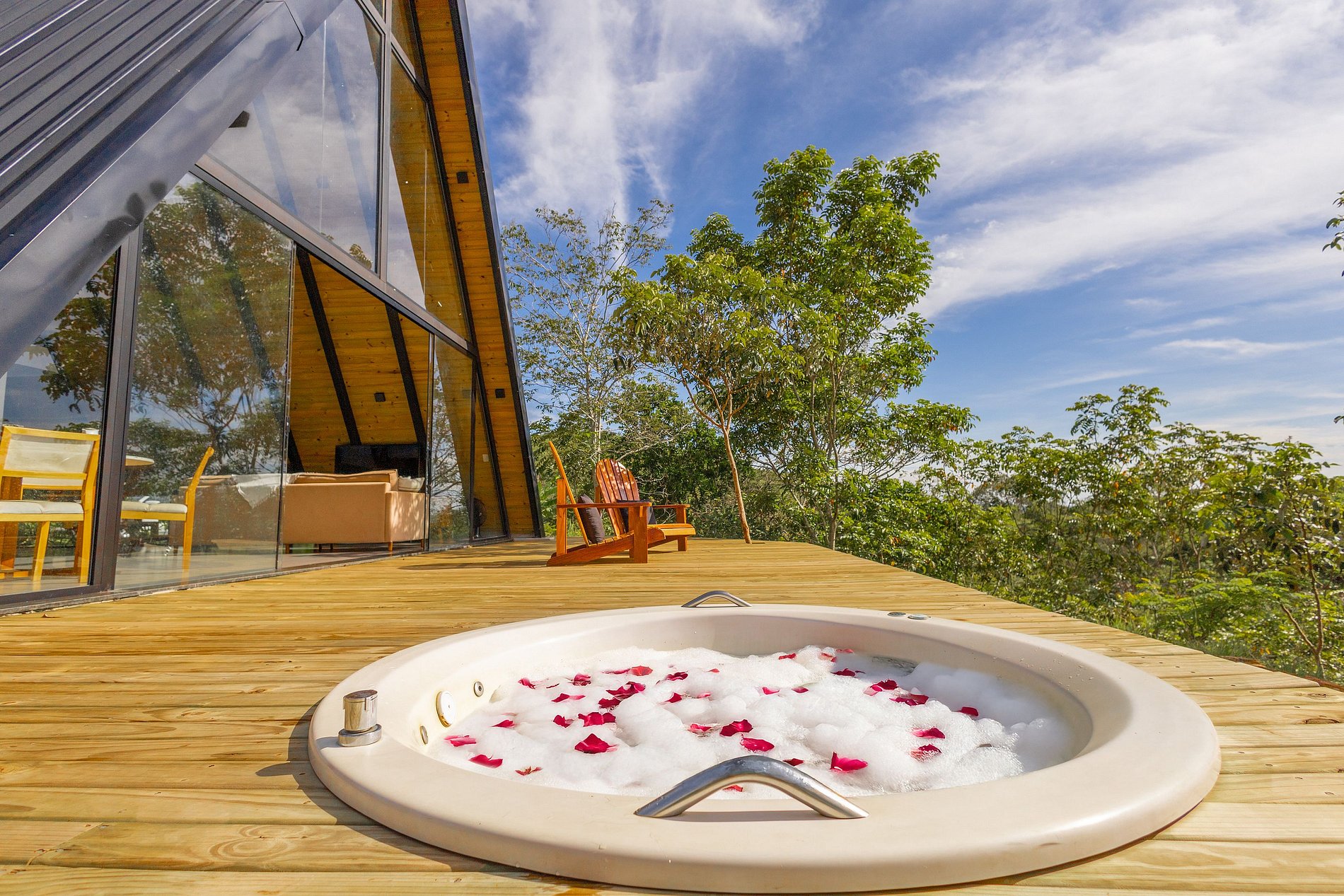 - Banheira de hidromassagem no deck da Cabana com uma vista incrível para o cerrado.