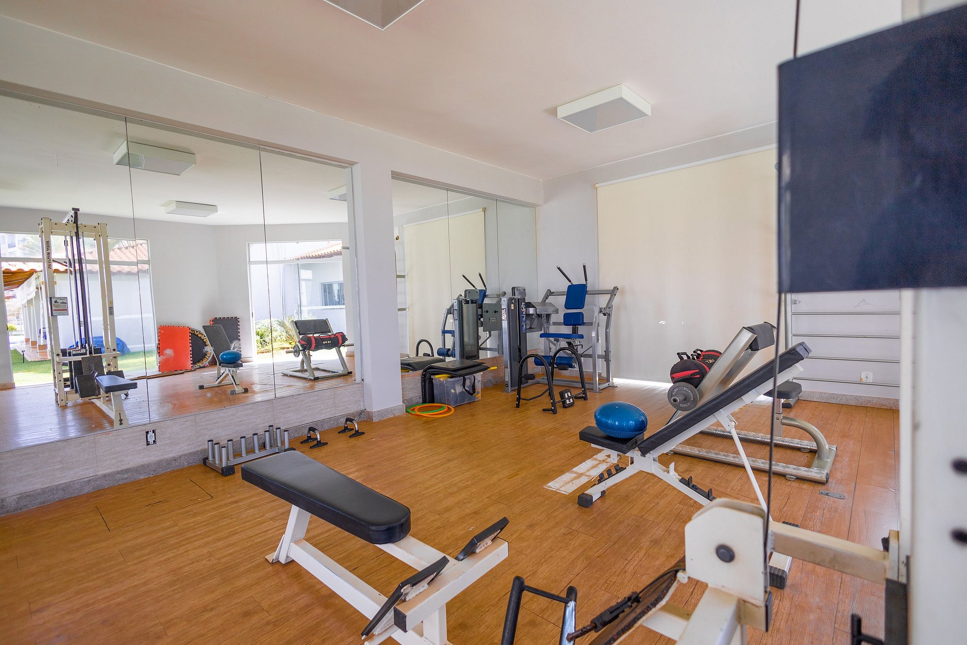 Para a diversão de todos, a casa oferece opções exclusivas de lazer. A piscina e o ofurô garantem momentos de relaxamento, enquanto o campinho de futebol, o playground e o espaço kids fazem a alegria das crianças. Para quem não abre mão do bem-estar, a academia permite manter a rotina de exercícios mesmo durante a estadia.
