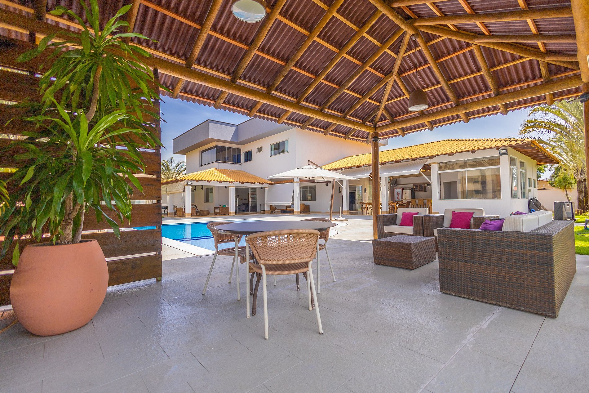 Nossa mansão luxuosa em Caldas Novas é o refúgio perfeito para quem busca conforto, lazer e momentos inesquecíveis. A ampla área de lazer é um verdadeiro paraíso particular, com uma espaçosa varanda gourmet equipada com churrasqueira, cervejeira e uma cozinha completa, proporcionando toda a praticidade para preparar e desfrutar de deliciosas refeições. O espaço é ideal para relaxar, com áreas aconchegantes para descanso enquanto você aproveita cada momento com amigos e familiares.