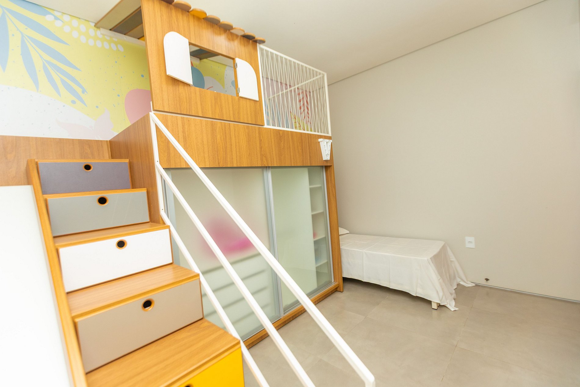 - Acomoda até 6 pessoas em 2 quartos climatizados, sendo uma suíte e um quarto infantil decorado.