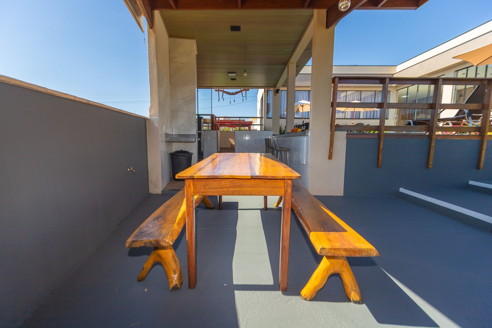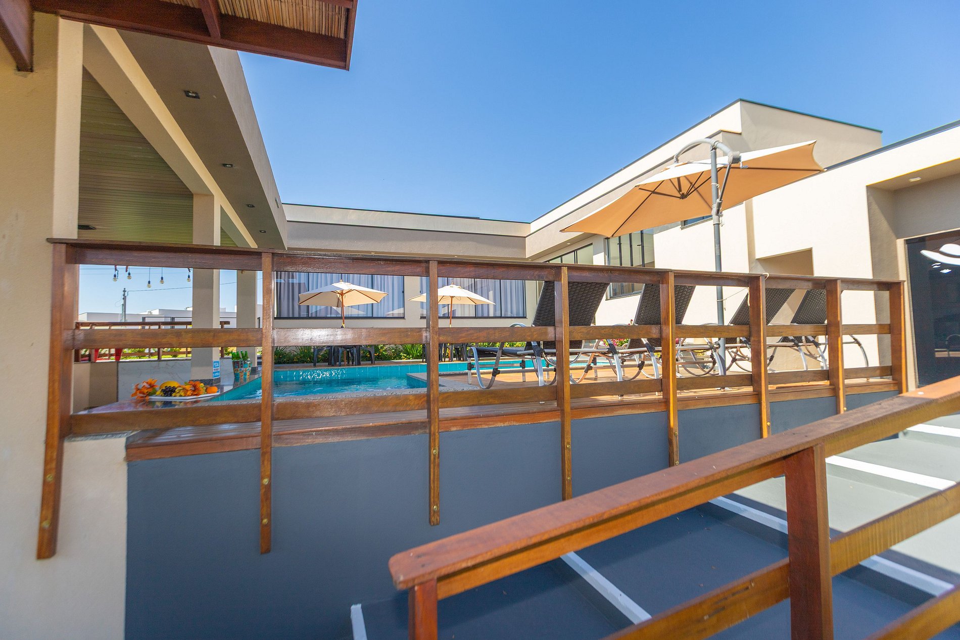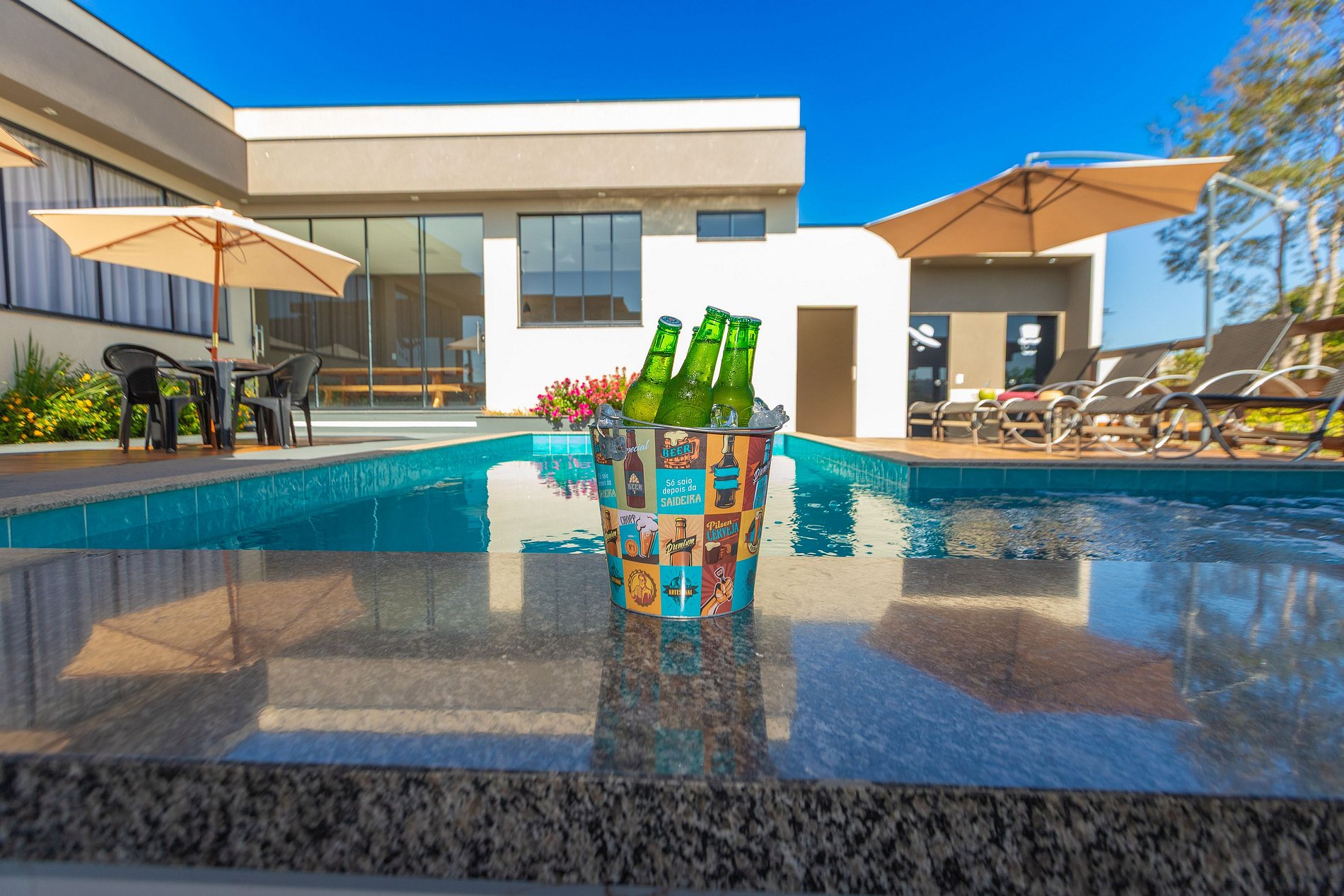 Na área de lazer, desfrute de uma piscina com aquecimento solar e elétrico, garantindo água sempre quente para relaxar em qualquer momento. A piscina também conta com hidromassagem e é rodeada por espreguiçadeiras para momentos de descanso ao sol. Ao lado, há um espaço completo para refeições e uma cozinha gourmet estilo bar molhado, equipada com cervejeira e churrasqueira — o cenário perfeito para reunir amigos e família. Para as crianças, um divertido pula-pula garante a diversão ao ar livre.